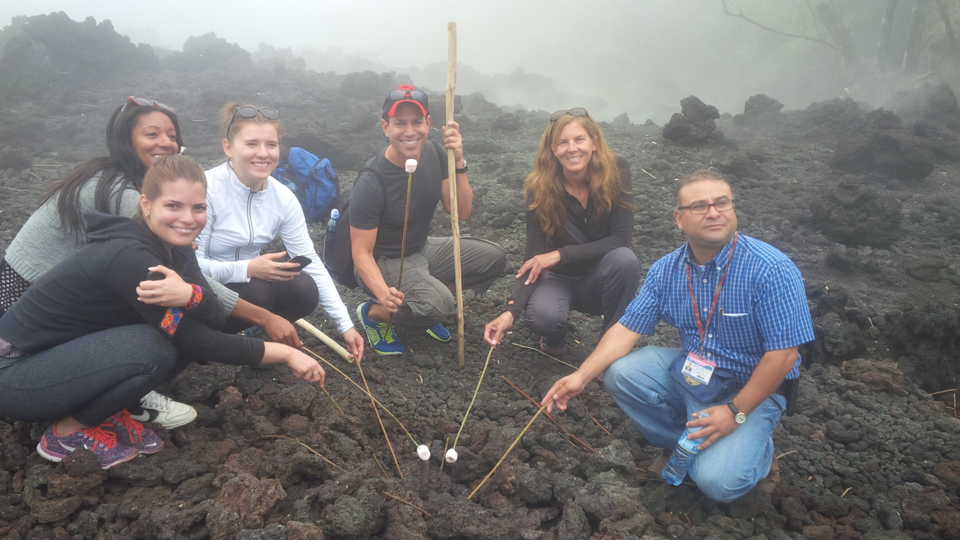 When we were finished shopping, the guides broke out the marshmallows. While having a snack on a hike is nothing new, roasting marshmallows at the top, and without a fire, was a first.